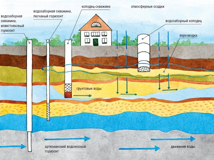 La situation avec la présence et la profondeur des aquifères peut être très différente d'un endroit à l'autre (mais quelque part il n'y en a pas du tout, comme sur l'île de Madère).