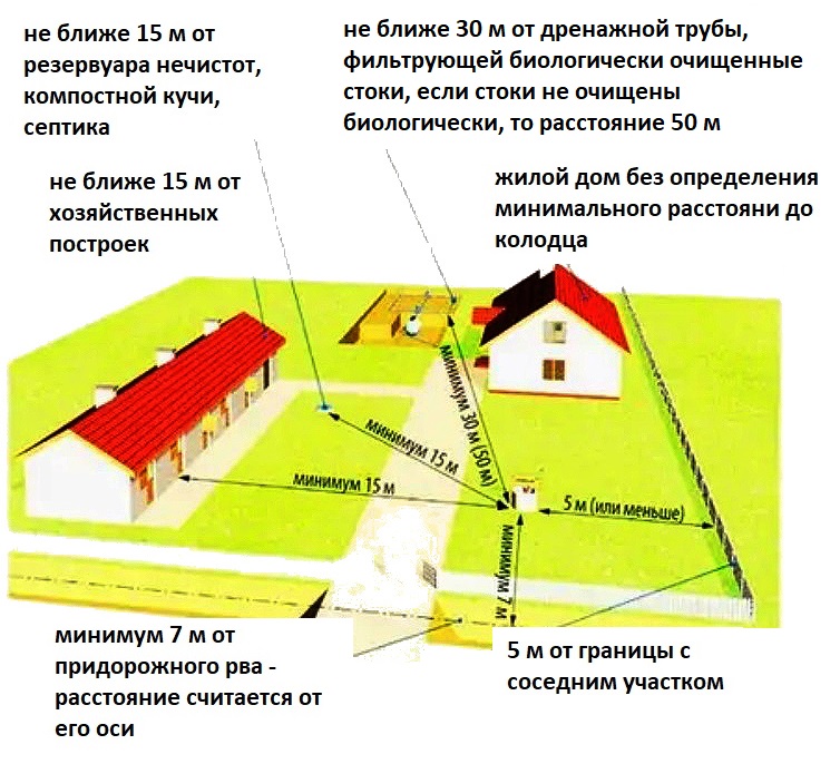Les exigences pour organiser un puits artésien sont plus strictes. Les entreprises industrielles et autres sources de contamination chimique devraient être éloignées à plus de 300 mètres de l'emplacement du puits.