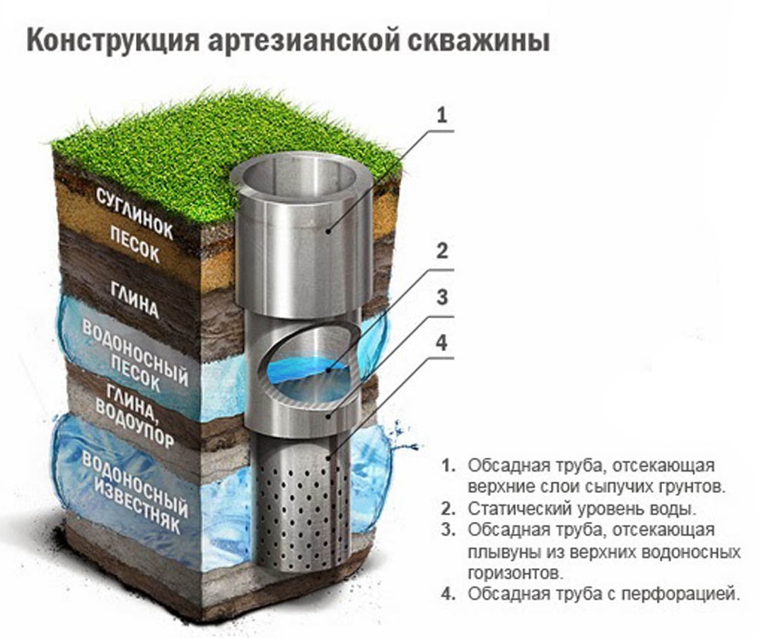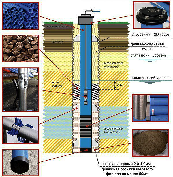 La priorité de sélection des puits s'explique facilement par l'étanchéité élevée de la structure, qui est obtenue en raison de l'ajustement serré du tubage au corps de la structure. Cela empêche le mélange des eaux souterraines et de l'aquifère.
