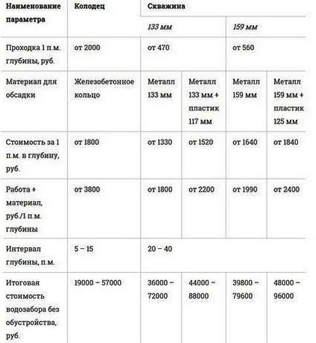 Comme le montrent les calculs, au prix des coûts, y compris tous les travaux d'installation et d'entretien de la structure érigée, un puits est moins cher.