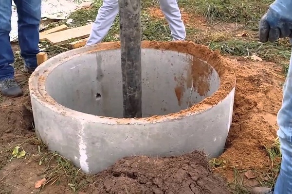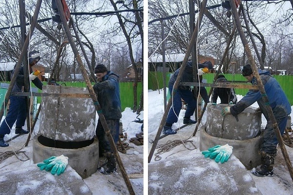Dans le processus, la colonne doit se déposer sous son propre poids. De nouveaux anneaux sont mis sur la place vacante. Le creusement est effectué jusqu'à ce que l'eau commence à arriver très rapidement.