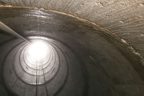 Nous commençons par inspecter les nouveaux anneaux et parois du puits.Nous vérifions s'il y a des irrégularités graves qui peuvent gêner la descente de la structure.
