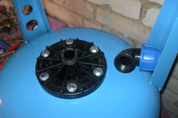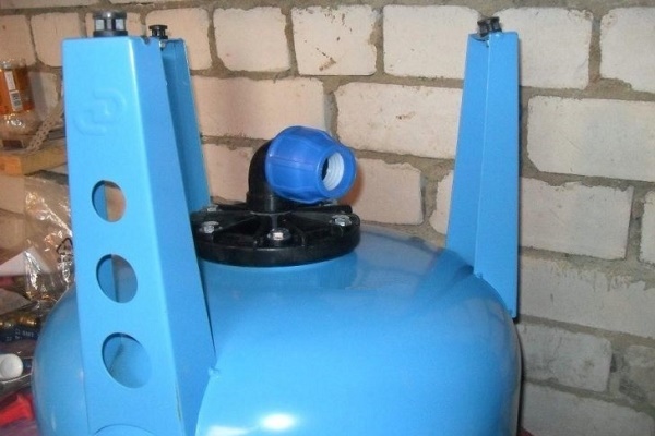 Ensuite, l'eau entre réservoir d'accumulateur. Il s'agit d'un réservoir en acier ou en plastique. Il a un réservoir en caoutchouc où l'air est pompé.