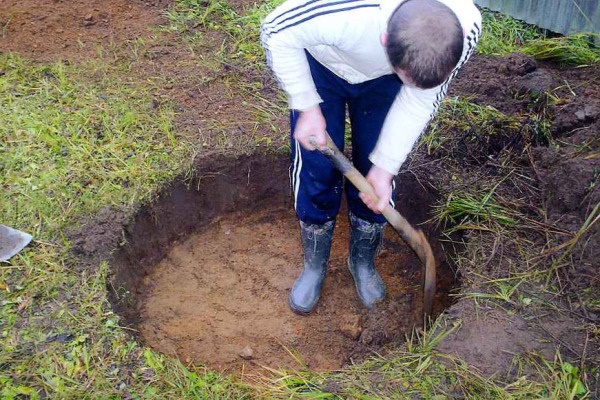 Pour loger l'eau est introduite pour que cet endroit soit caché sous le sol. Pour ce faire, creusez partiellement la fondation pour y faire un trou.
