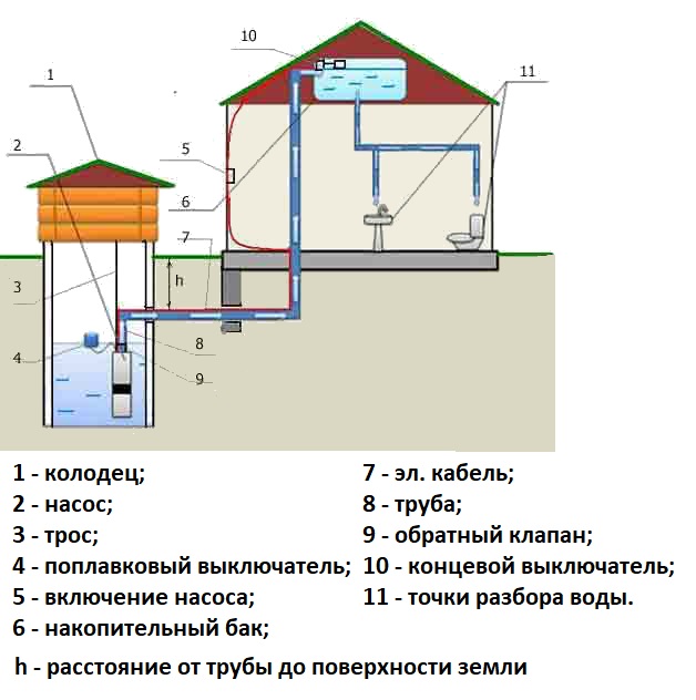 Parfois, un bâtiment utilitaire est placé à côté du puits. Si la profondeur de la prise d'eau dépasse 9 mètres, vous aurez besoin d'une pompe profonde spéciale. Dans les puits, vous pouvez utiliser des modèles vibratoires et centrifuges.