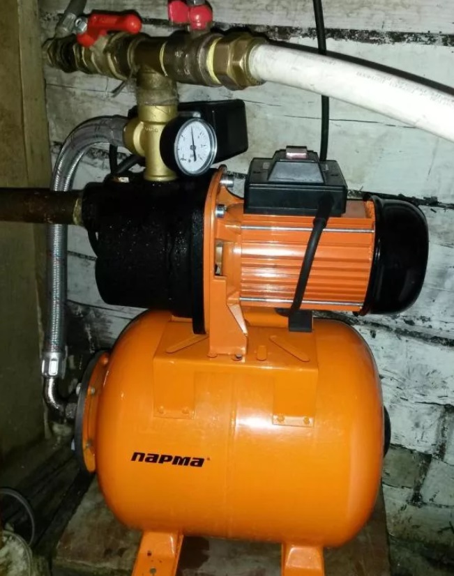 Honnêtement, je n'ai pas osé construire de manière indépendante une station de pompage - néanmoins, l'expérience en la matière ne suffit pas. J'ai choisi la version finie avec un réservoir de stockage. Il l'a mis dans le grenier (il ne gèle pas en hiver, donc ce n'est pas effrayant de le mettre là-bas). Marina-Speroni a pris la station de pompage - bien qu'elle coûte cher, elle est puissante. Je récupère l'eau d'un puits près de la maison. Ça marche bien.