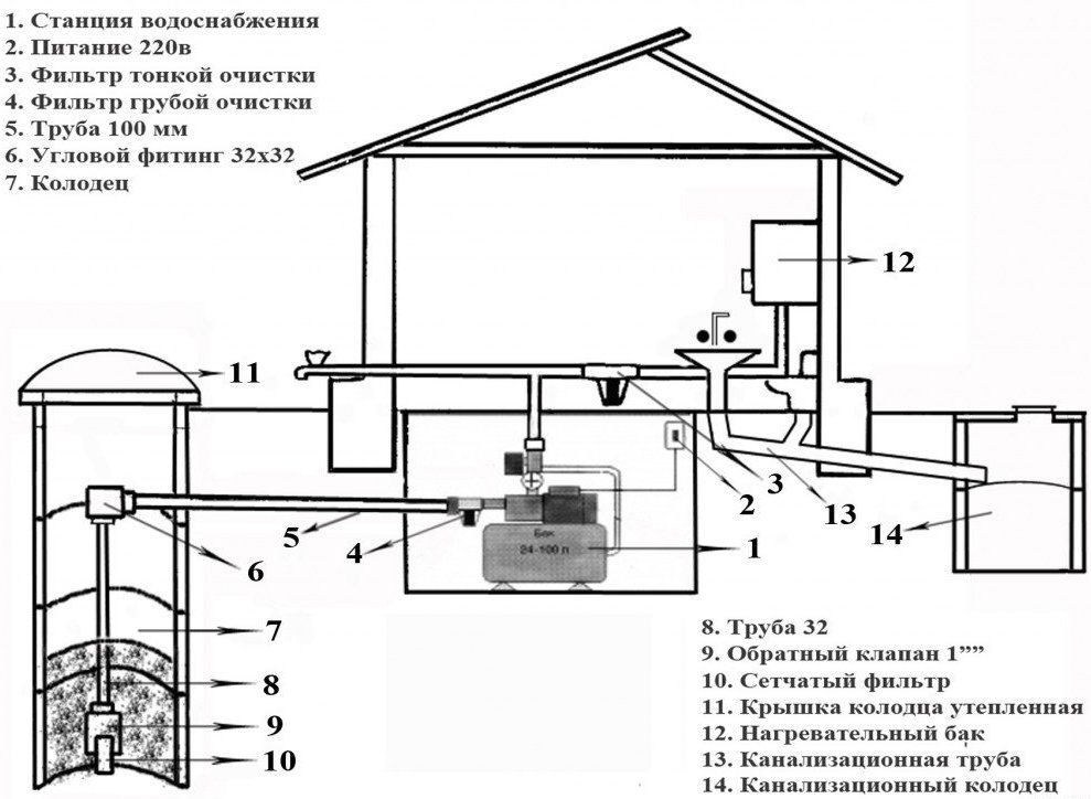Pour que la station fonctionne, il faut une alimentation électrique de 220 V. La section des tuyaux doit être choisie de manière à ce que l'eau circule librement à travers les canaux reliant l'équipement de pompage et les points de consommation.