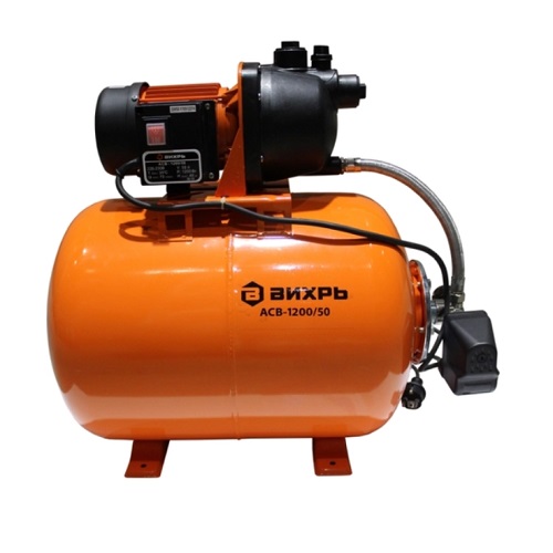 Un grand réservoir de 50 litres de la station Whirlwind ASV-1200/50 est capable de fournir un approvisionnement en eau ininterrompu à une petite ferme.