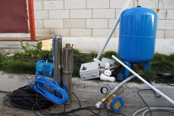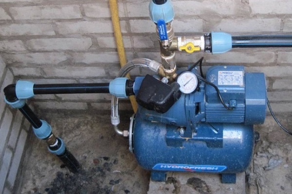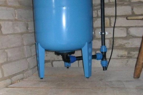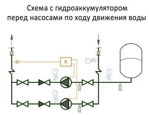 L'option la plus courante pour l'alimentation en eau autonome avec un accumulateur hydraulique est un tandem avec une pompe de surface. Dans ce cas, le réservoir hydraulique peut faire partie de équipement de pompage intégréassemblé par le fabricant en usine, ou un composant séparé situé à côté de la pompe dans une boîte ou dans une buanderie chauffée.