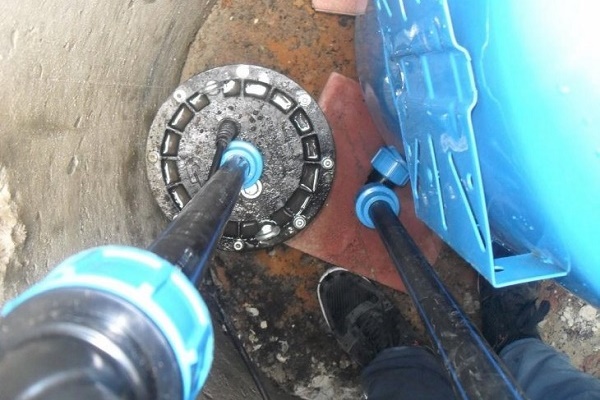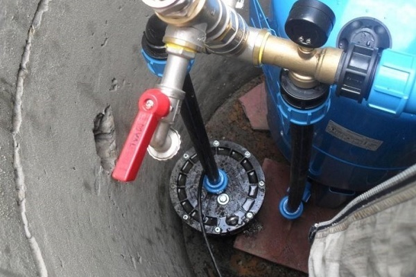 Avec la participation d'une pompe de surface dans le circuit, un réservoir hydraulique est monté à côté de lui. Le clapet anti-retour est ensuite installé sur le tuyau d'aspiration et les éléments restants forment un seul faisceau, se connectant les uns aux autres à l'aide d'un raccord à cinq broches.