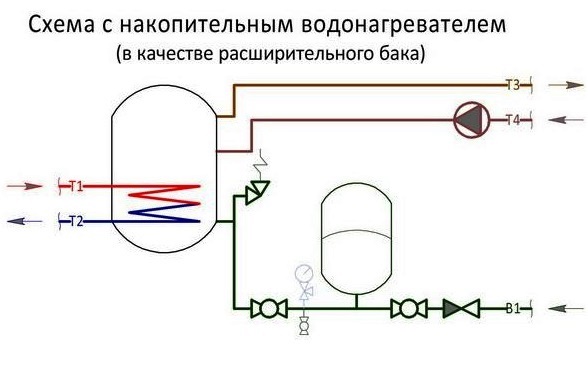 Si le schéma de connexion apparaît chauffe-eau à accumulation, l'accumulateur remplit alors les fonctions d'un vase d'expansion. Si l'eau est chauffée, son volume augmentera. Il s'agrandira. Pour un espace confiné, qui est le système d'alimentation en eau, un tel processus pourrait entraîner des conséquences dévastatrices sinon pour le réservoir hydraulique.