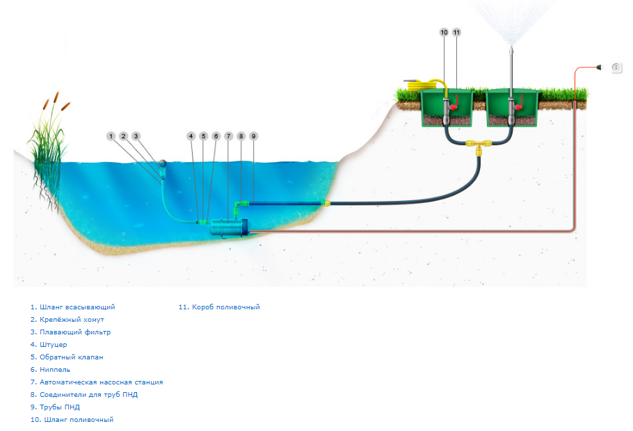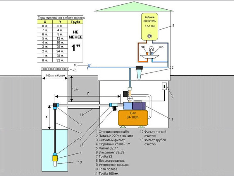 Je joins pour vous un schéma détaillé de l'alimentation en eau de la maison depuis le lac. Il n'est pas difficile d'y ajouter un caisson, un accumulateur hydraulique et un pressostat. Le dernier élément devra être calibré manuellement afin qu'il n'y ait pas d'interruption de l'alimentation en eau. Le site contient des instructions actuelles à ce sujet.