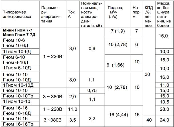 Dans la vie de tous les jours, les modèles les plus couramment utilisés sont «Mini Gnome», «Gnome 16-16T», «Gnome 10-10T» et «Gnome 20-25», nous continuerons donc à parler de ces pompes électriques domestiques. Ces modèles sont de petite taille et pèsent de 10 à 32 kg.