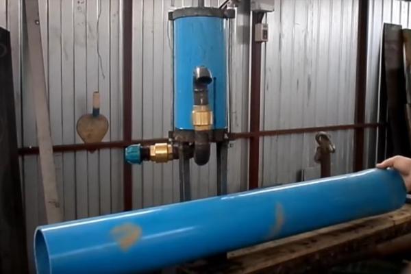 Insérez-le dans un tuyau d'égout en plastique d'un diamètre de 50 mm, du côté du clapet anti-retour, fermez la buse avec un filtre. Il s'avère que le design "pipe in pipe", qui doit être immergé dans le puits.