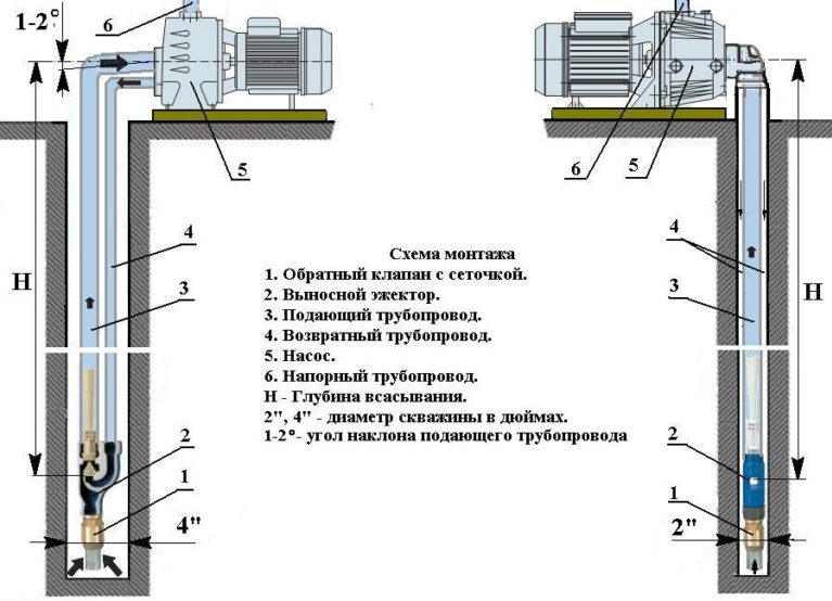 Vous pouvez augmenter la puissance d'aspiration lors de l'utilisation éjecteur à distance qui peut faire face à la montée de l'eau à une profondeur de 35 à 40 m. Les modèles industriels d'éjecteurs sont capables de fonctionner efficacement si le miroir d'eau est à une profondeur de 19 à 20 m. La longue distance jusqu'à la source n'est pas non plus un obstacle pour le dispositif d'éjection.