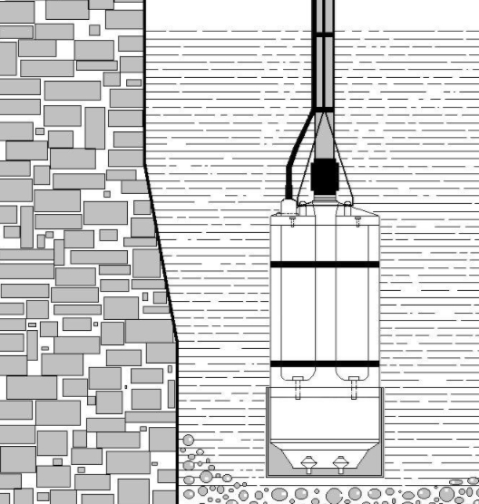 La pompe Typhoon doit être suspendue de sorte qu'elle ne touche pas les parois et le fond pendant le fonctionnement. La distance entre la prise d'eau et le fond doit être d'au moins 40 cm.