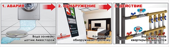 «Aquastorozh» est un complexe d'appareils qui peuvent détecter la présence de fuites d'eau dans la maison et les éliminer littéralement en quelques secondes.