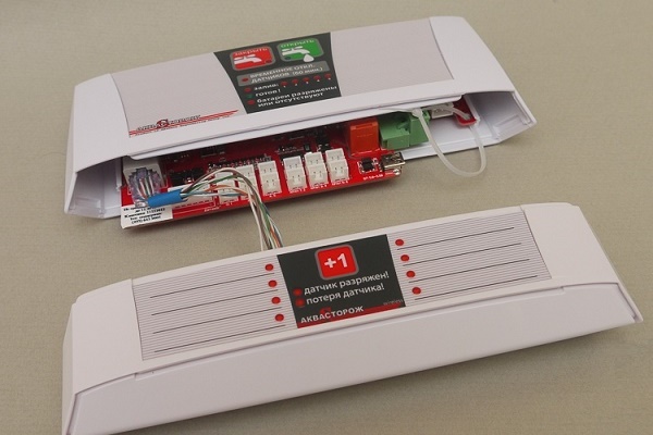 De plus, Aquastorozh peut toujours être modifié ou amélioré à l'aide de modules supplémentaires. Les capteurs et le contrôleur sont élégants et modernes. S'il n'y a aucun moyen de cacher l'unité de contrôle dans une armoire, cela n'a pas d'importance. Lui et le mur auront fière allure.