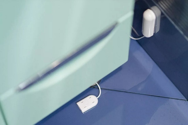 - Capteurs de fuite. Si de l'humidité pénètre, ils signalent une fuite. Ils sont connectés exclusivement à des sources d'énergie sûres. Les capteurs sont installés dans les endroits les plus souvent menacés de fuites: sous les douches et les éviers, derrière les toilettes, près des machines à laver, dans les endroits où les tuyaux flexibles sont connectés, etc.