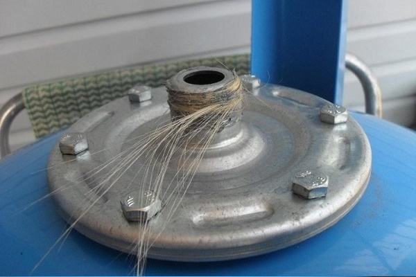 Un jet d'eau pointu peut briser le joint et, à basse pression, il se fissurera proprement. Un autre point très important - avant de fournir de l'eau à l'accumulateur, vous devez éliminer complètement l'air de la partie dans laquelle l'eau sera pompée.