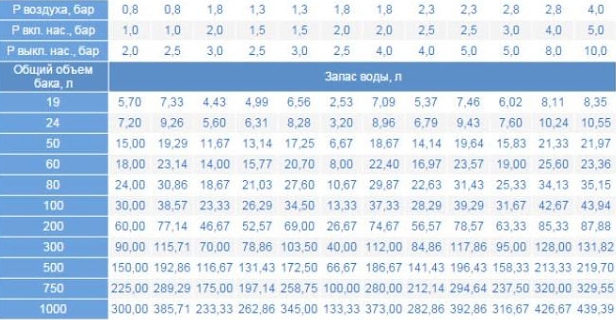 La pression d'air dans l'accumulateur est laissée à 1,5 atmosphère, comme réglé en usine, et la valeur de la pression minimale ou de la surpression est calculée comme 2,0-2,5 atmosphères. Ainsi, à la pression de l'air dans un réservoir vide - 1,5 atmosphère - cette différence de 0,5 à 1,0 atmosphère est ajoutée.
