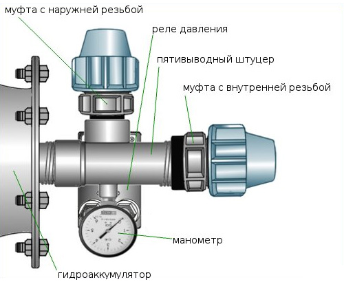Le processus de connexion de l'accumulateur au système d'alimentation en eau avec pompe submersible effectuer comme suit: