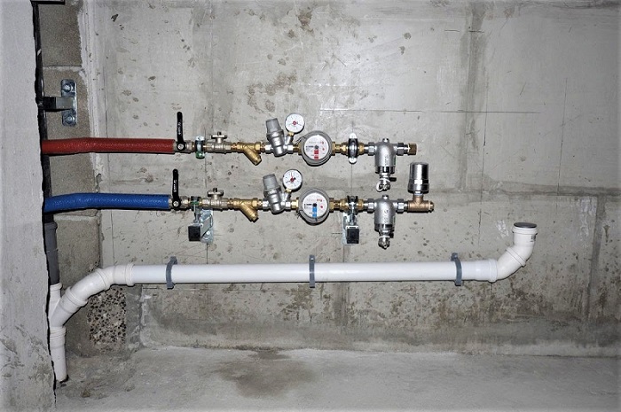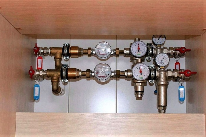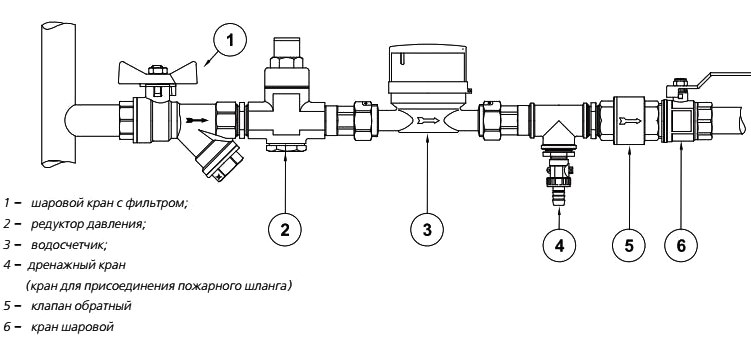 - Nous installons une soupape d'admission sur le tuyau après le compteur devant le robinet. Nous utilisons la méthode filetée.