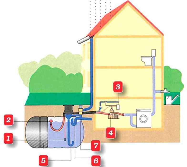 Un grand réservoir installé près de la maison pourra satisfaire le besoin en eau de 50%. Grâce au câblage spécial, l'eau de pluie s'écoulera vers les points de puisage qui ne nécessitent pas de liquides de haute qualité: dans les réservoirs de toilettes, la cuisine et les robinets d'arrosage. Mais dans ce cas, des filtres sont installés.