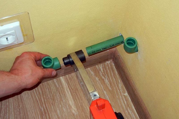 Le processus soudure de tuyaux en polypropylène ressemble à ceci. Vous devez d'abord préparer les pièces à souder. Pour ce faire, des sections de fixation des tuyaux sont décrites sur le mur.