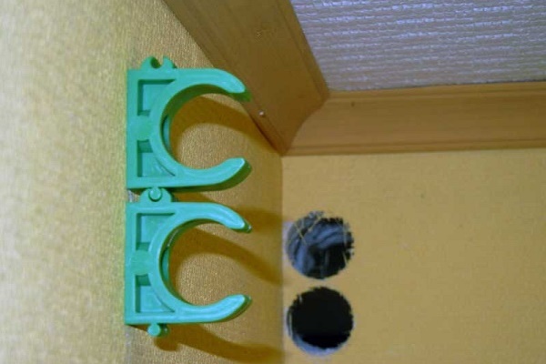 Pour fixer les tuyaux au mur, des clips spéciaux sont utilisés qui sont sélectionnés en fonction du diamètre de la pièce. Ils peuvent être simples ou doubles.Les experts conseillent de choisir des tuyaux et accessoires du même fabricant. Il y aura donc moins de problèmes lors de l'installation et le système se révélera meilleur.