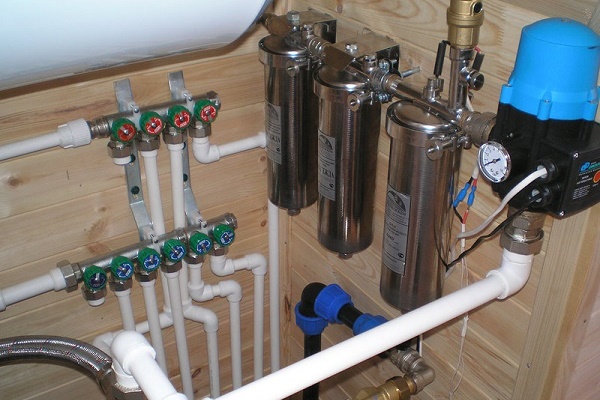 Le système est amené à la maison, il est placé dans le bâtiment, puis l'installation de l'alimentation en eau interne en plastique est effectuée. Un filtre grossier doit être installé sur le site où le tuyau est introduit dans la maison ou l'appartement.