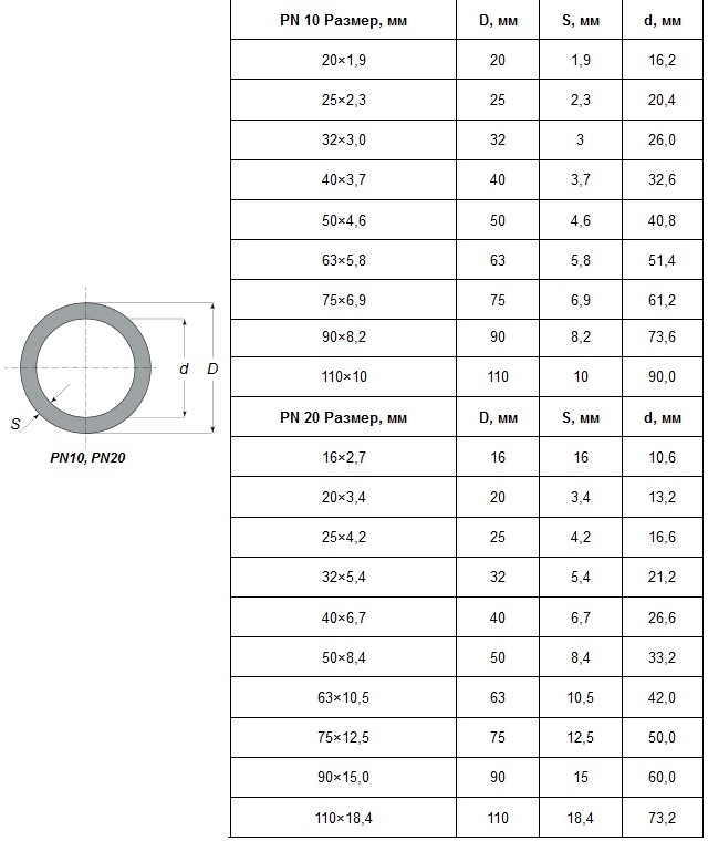 - PN20. Tuyaux assurant un transport de fluide normal tº + 80ºС. Par analogie avec le point de vue précédent, il fait partie des universels.