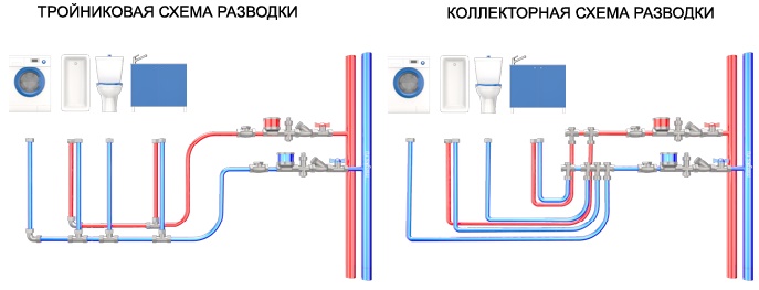 Il peut s'agir d'un tee ou d'un collecteur. Dans le premier cas, les points d'eau sont connectés en série, l'un après l'autre. D'une part, cela est bon car il nécessite un nombre minimum de canalisations et donc de faibles coûts.