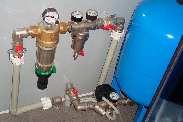 Un équipement de traitement de l'eau est installé après l'accumulateur. Il s'agit d'un ensemble de filtres sélectionnés en fonction des résultats de l'analyse de l'eau entrant dans la maison.