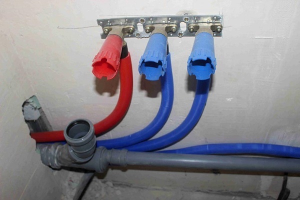 Le tuyau d'alimentation en eau froide est connecté au collecteur correspondant, à partir duquel le câblage est plus bas dans le bâtiment. La canalisation chaude est d'abord connectée au chauffe-eau, puis au collecteur correspondant, puis - de manière similaire à la première option.