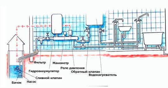 Vous pouvez vous passer d'un accumulateur hydraulique. Pour ce faire, vous devez installer un réservoir de stockage au point de construction le plus élevé.