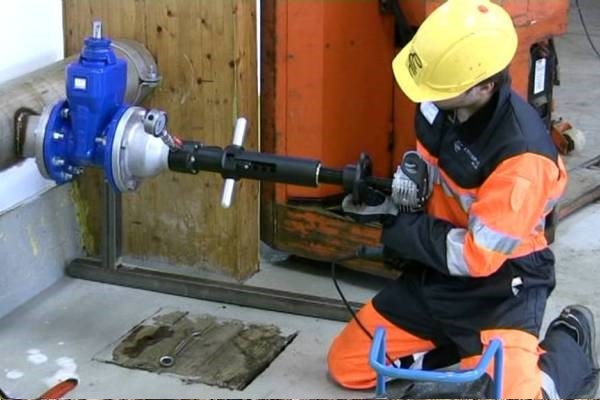 Le foret doit être inséré uniquement à travers la vanne d'arrêt afin qu'après la «panne» du corps du tuyau, le débit d'eau soit bloqué et l'outil de coupe puisse être retiré librement. Pour assurer l'étanchéité du joint lors du perçage, une buse spéciale est utilisée.